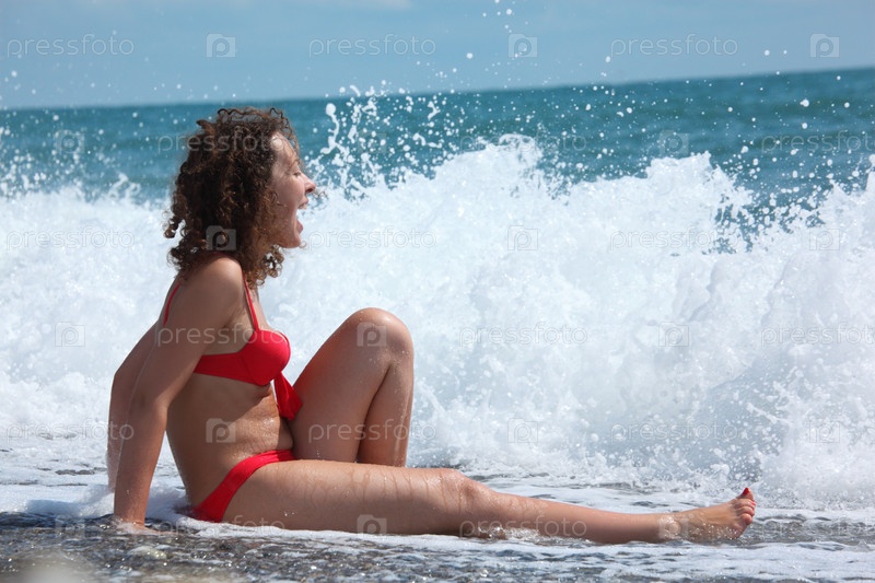 Девушка радуется морскому прибою