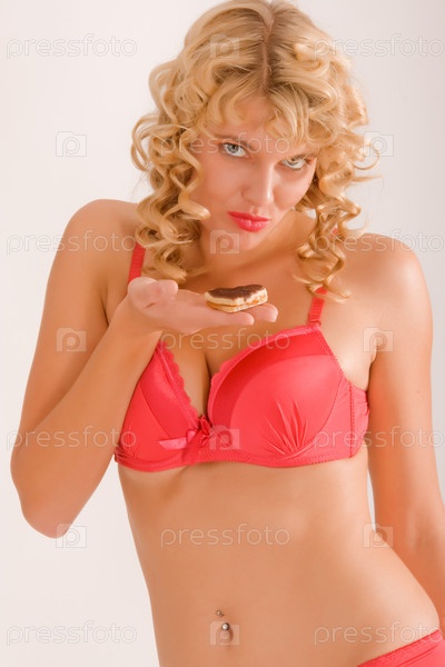 Белокурая женщина с вьющимися волосами в красном белье