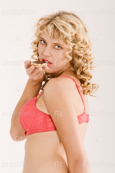 Белокурая женщина с вьющимися волосами в красном белье