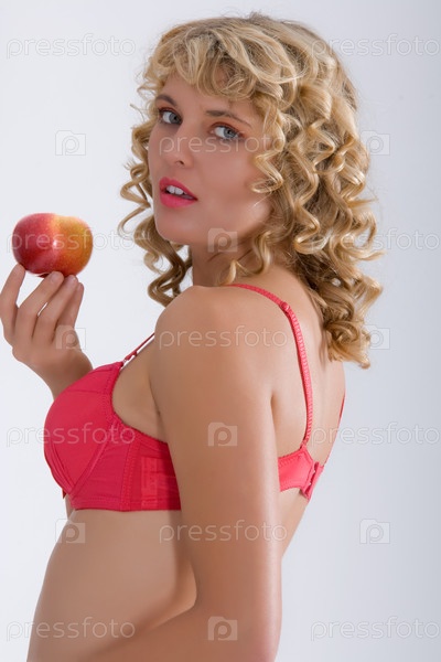 Женщина в нижнем белье с яблоком