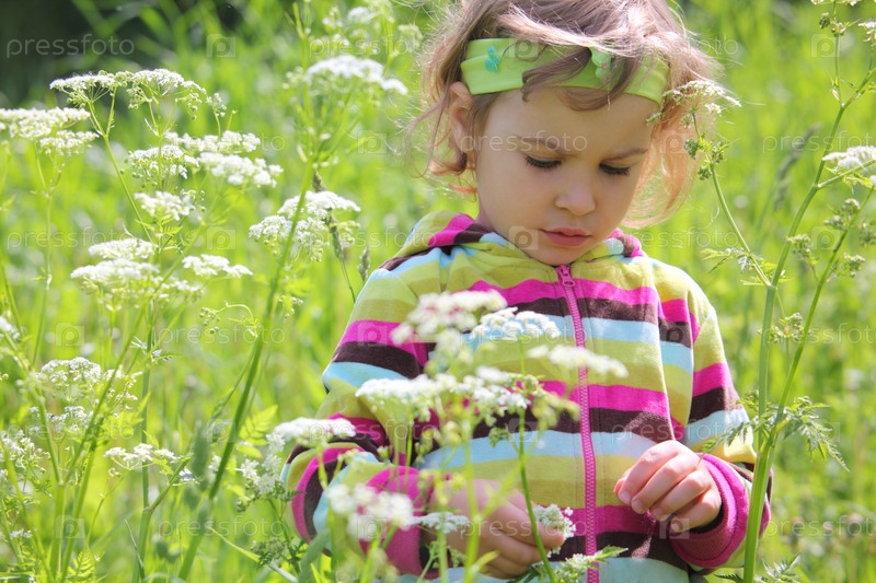 Девочка на поляне среди цветов