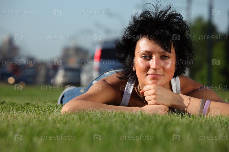 Девушка лежит на траве