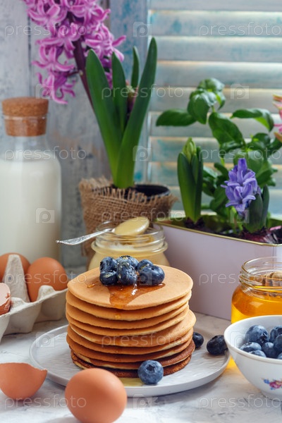 Блины с черникой и медом