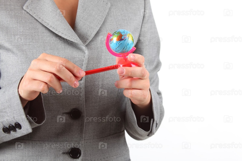 Женщина держит глобус в руках