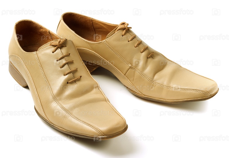 Мужские бежевые туфли на белом фоне