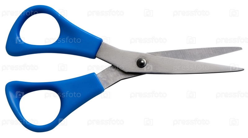 Ножницы с синей ручкой на белом фоне