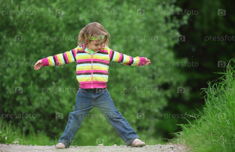 Девочка занимается гимнастикой в парке