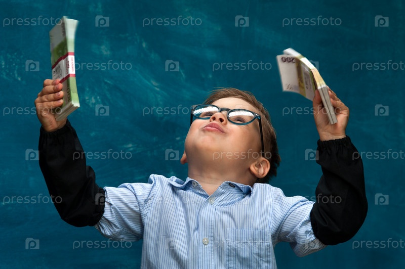 Маленький стильный мальчик с деньгами