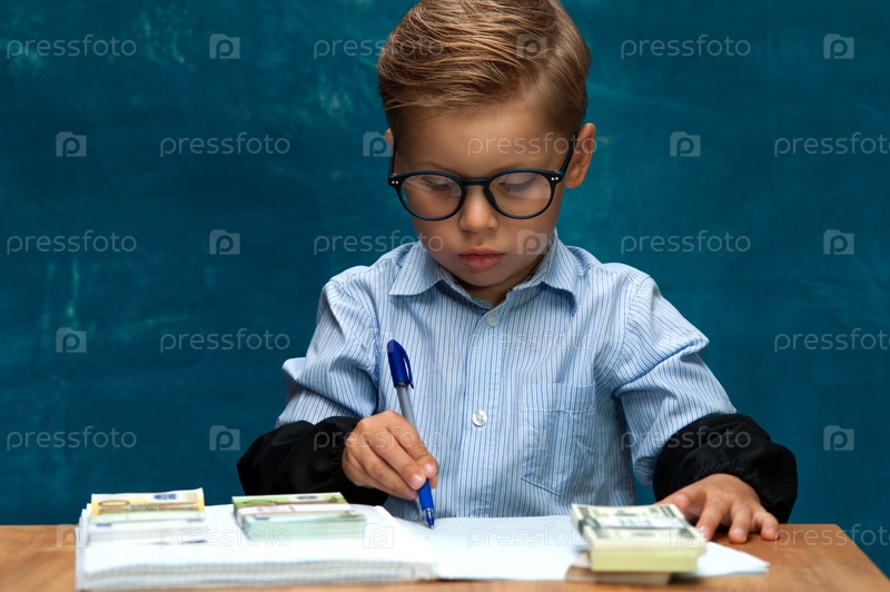 Маленький стильный мальчик с деньгами