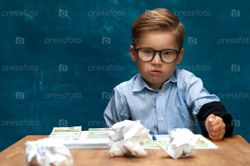 Маленький стильный мальчик с деньгами