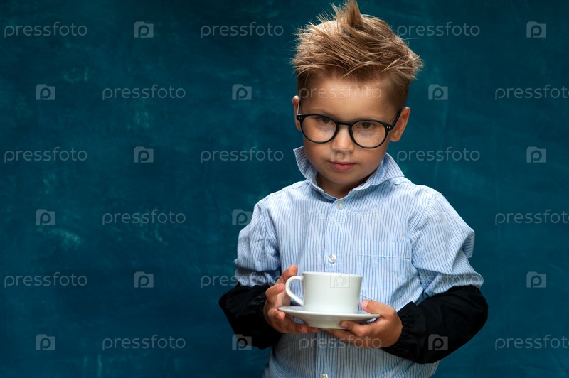 Маленький мальчик с чашечкой кофе