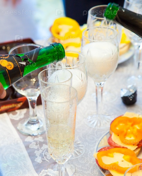 Шампанское наливают в бокал