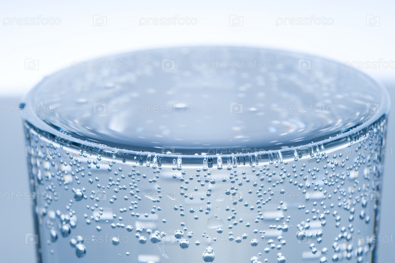 Полный стакан газированной воды крупным планом
