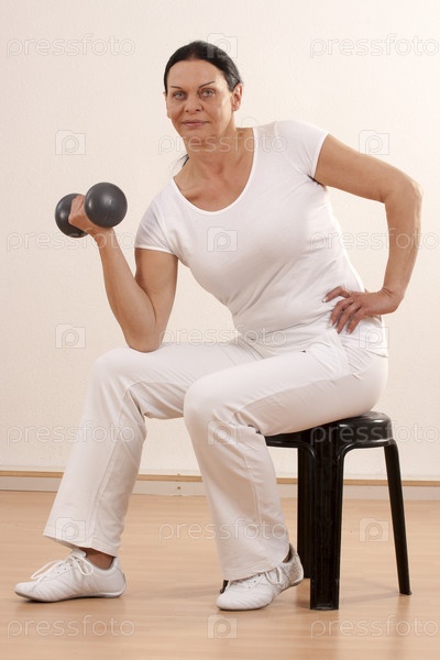 Женщина с гантелями