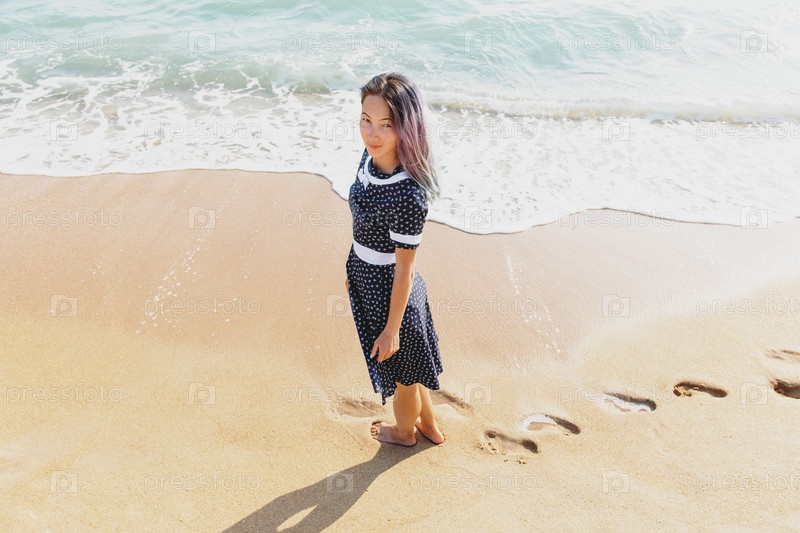 Красивая женщина на песчаном пляже