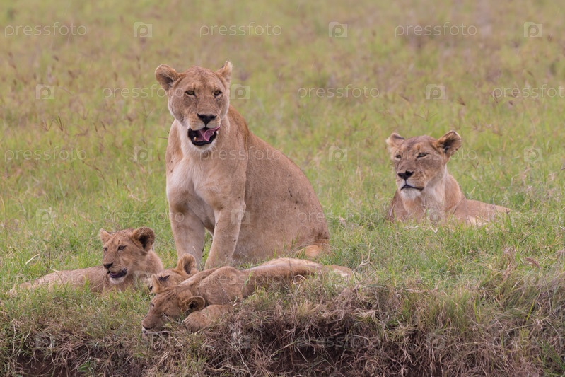 Львицы со своими детенышами в Нгоронгоро, Танзания, Африка