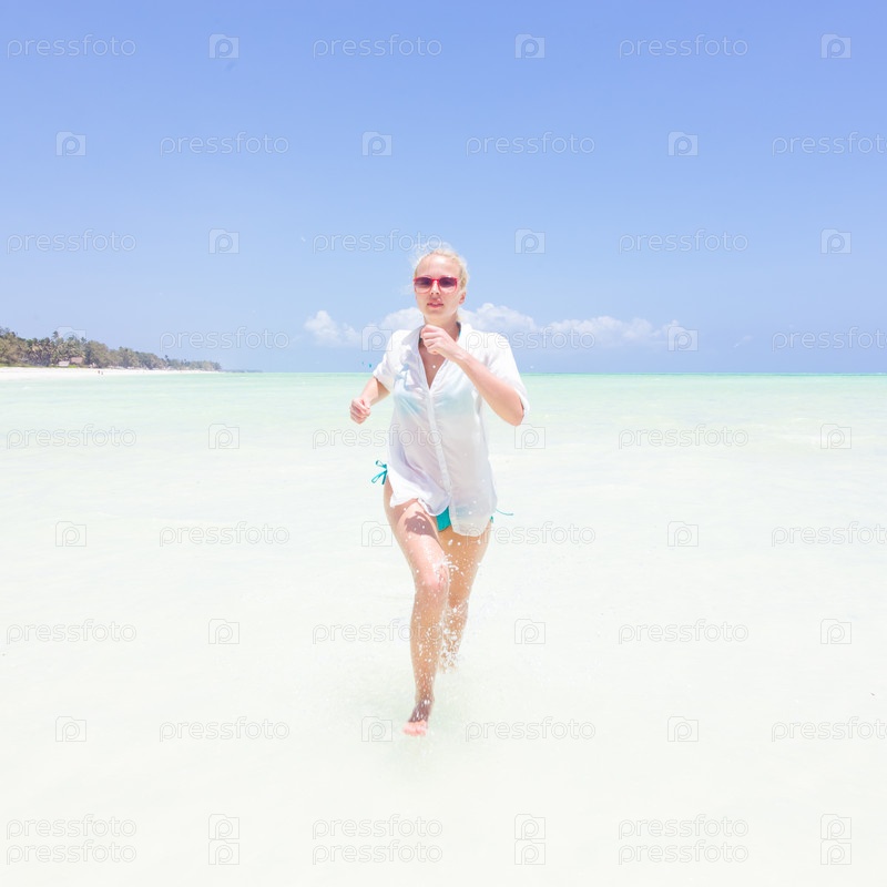 Молодая активная женщина на мелководье
