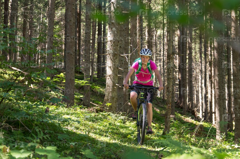 Велосипедист на лесной тропе