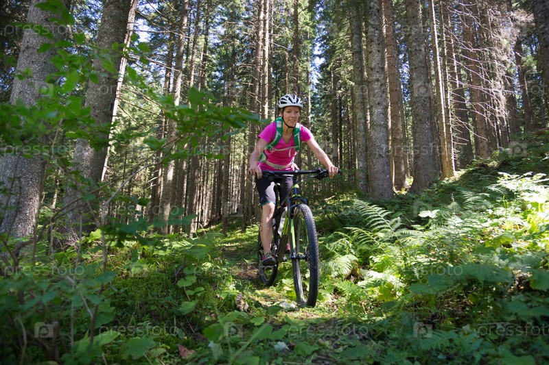Велосипедист на лесной тропе