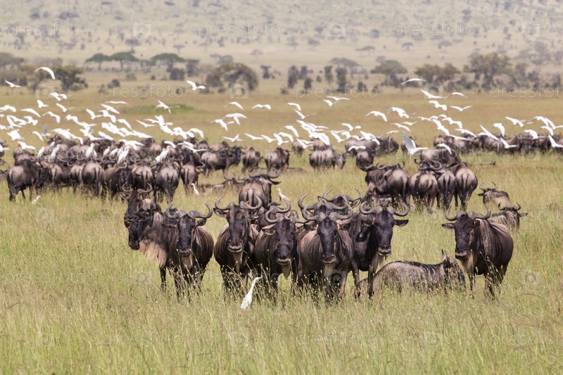 Гну пасутся в Национальном парке Серенгети в Танзании