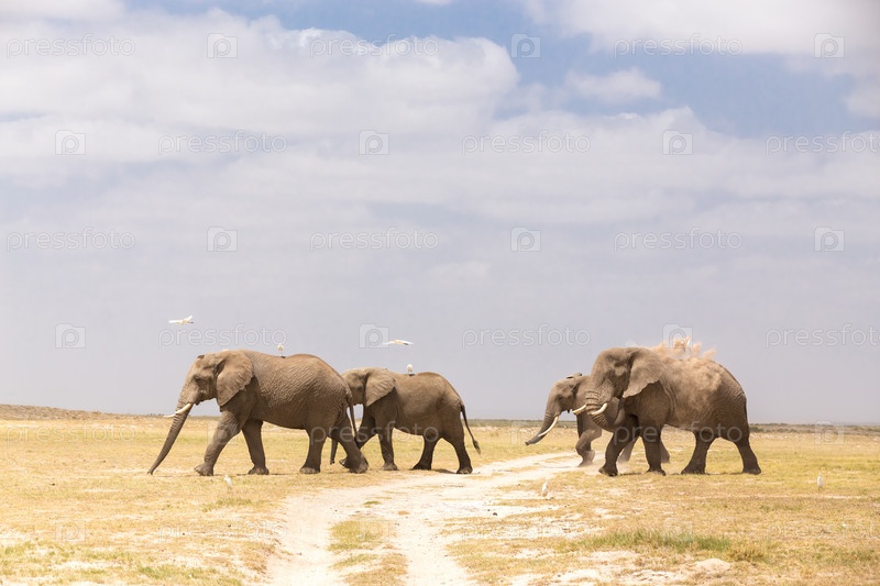 Стадо диких слонов в Национальном парке Амбосели, Кения