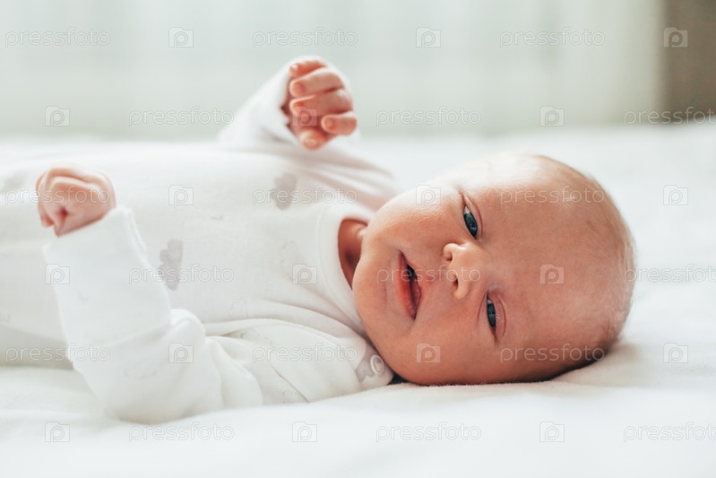 Новорожденный ребенок, глядя на камеру