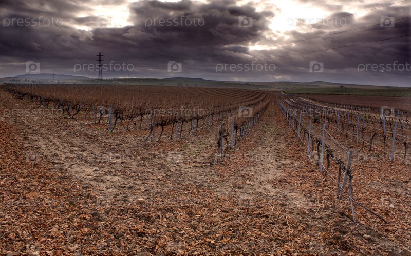 Виноградник осенью после сбора урожая
