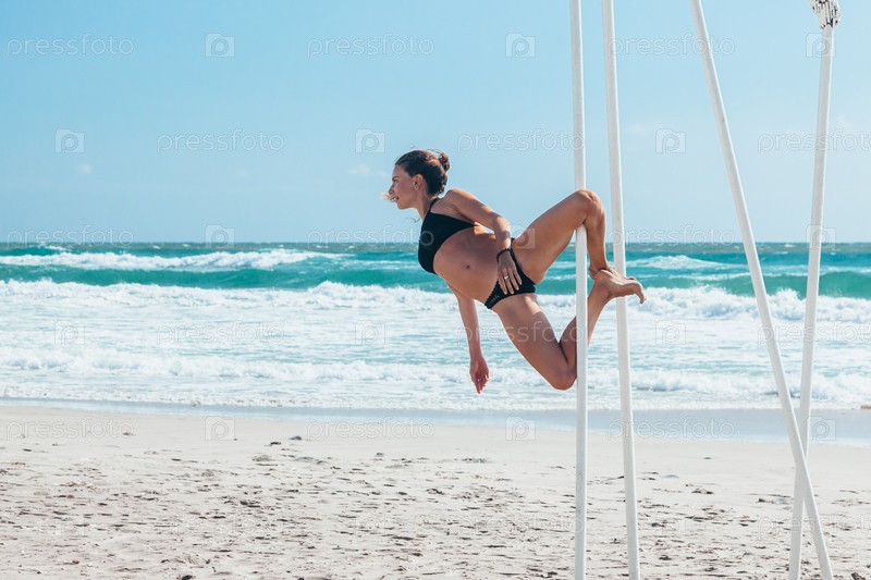 Танцовщица на пилоне на пляже