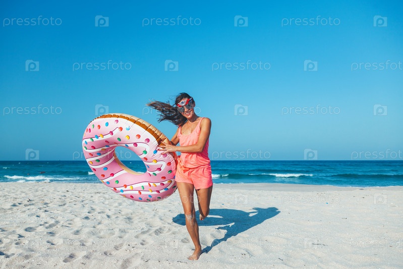 Девушка с пончиком на пляже