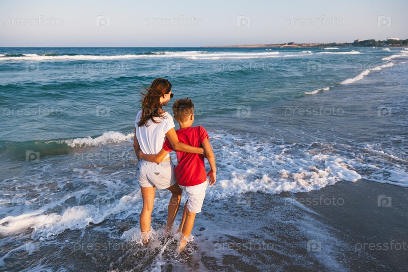 Мама и сын на пляже