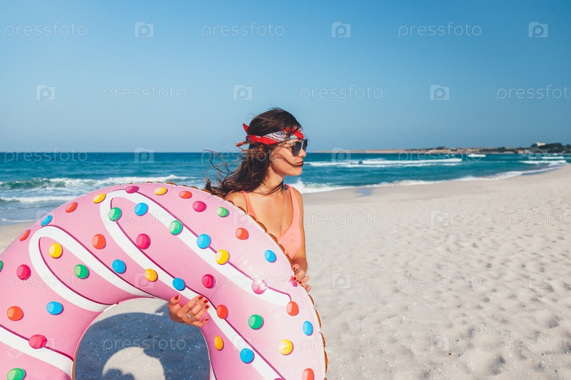 Девушка с пончиком на пляже