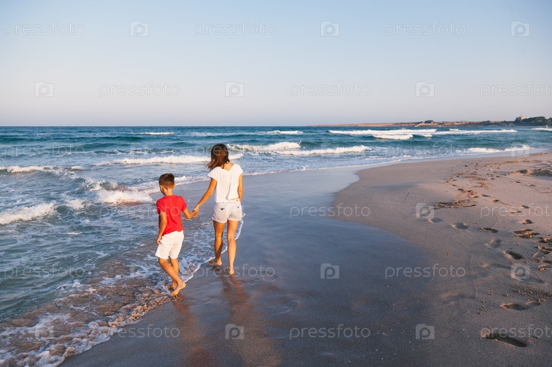 Мама и сын на пляже