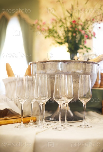 Бокалы на подносе в ресторане