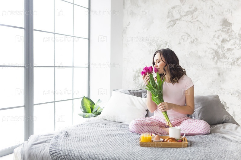 Молодая красивая женщина с завтраком