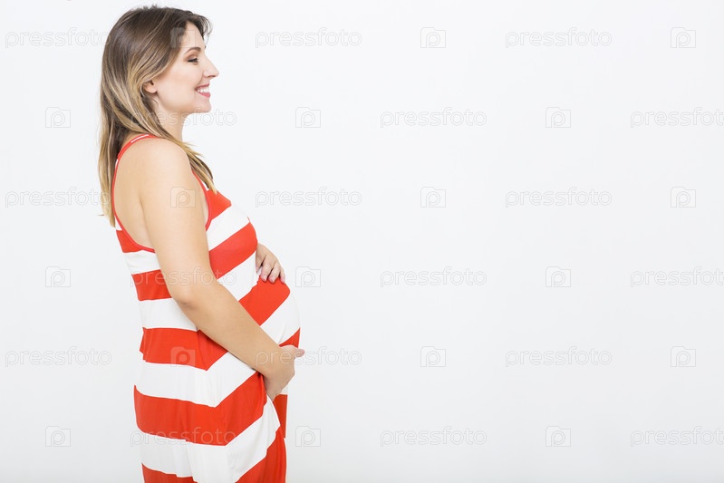 Беременная женщина на белом фоне