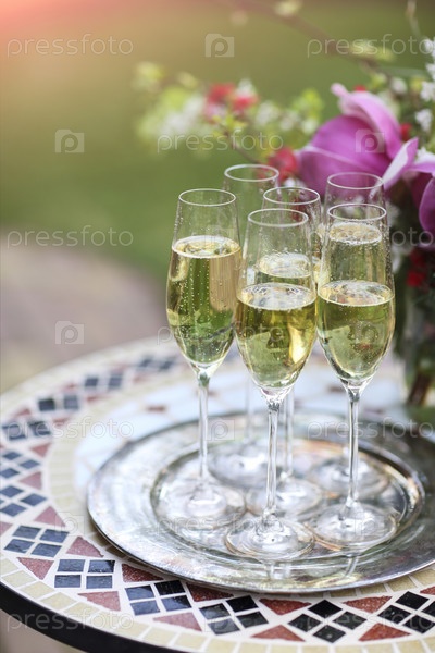 Фужеры на серебряном подносе