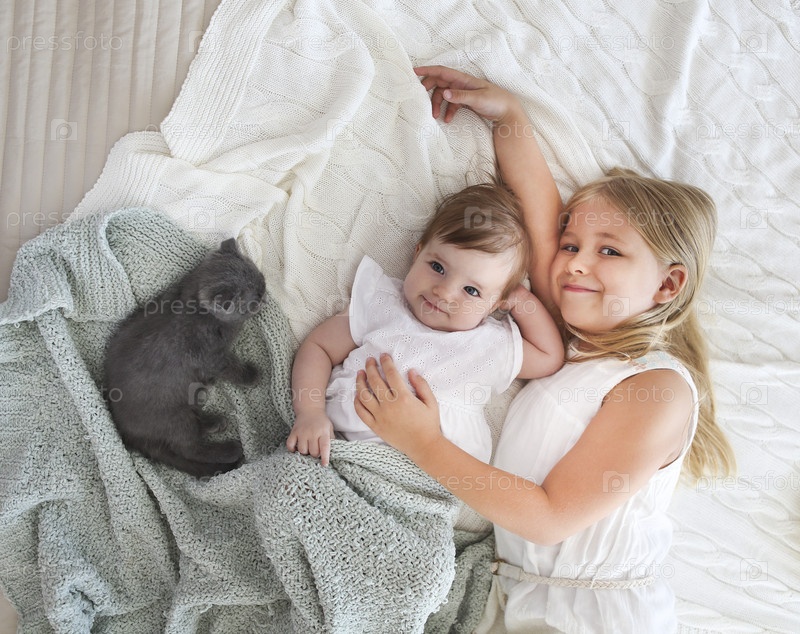 Портрет двух маленьких красавиц с котенком