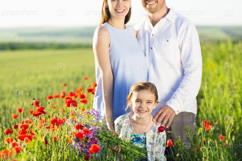 Портрет большой семьи в маковом поле