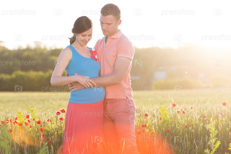Молодая красивая пара в маковом поле