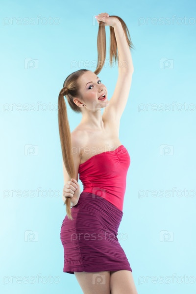 Веснушчатая девушка в красном платье