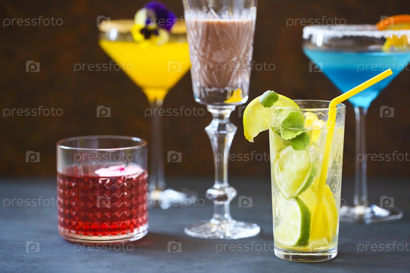 Различные холодные освежающие коктейли на столе