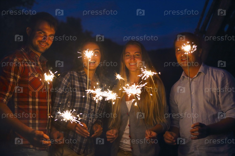 Молодые люди с бенгальскими огнями