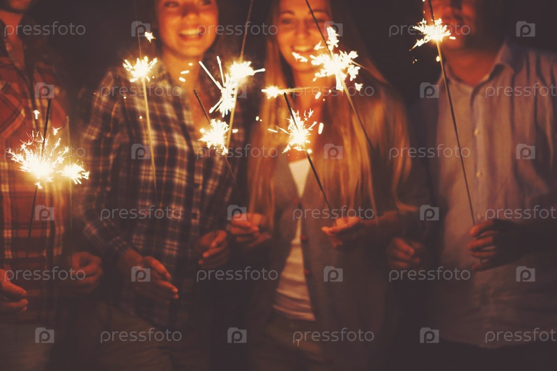 Молодые люди с бенгальскими огнями
