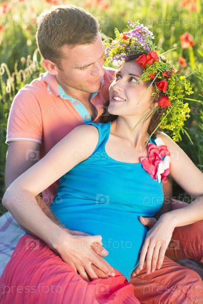 Молодая красивая пара в маковом поле