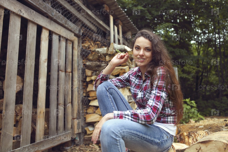 Красивая женщина на дровах