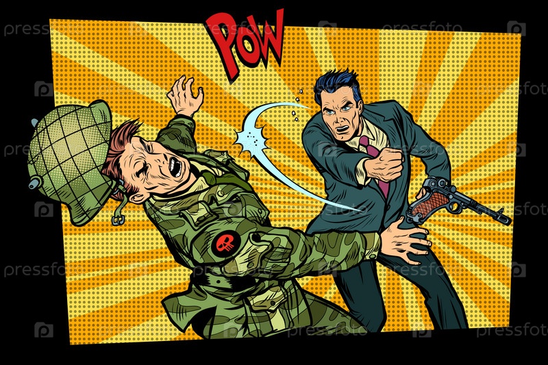 Гражданский бьет солдата