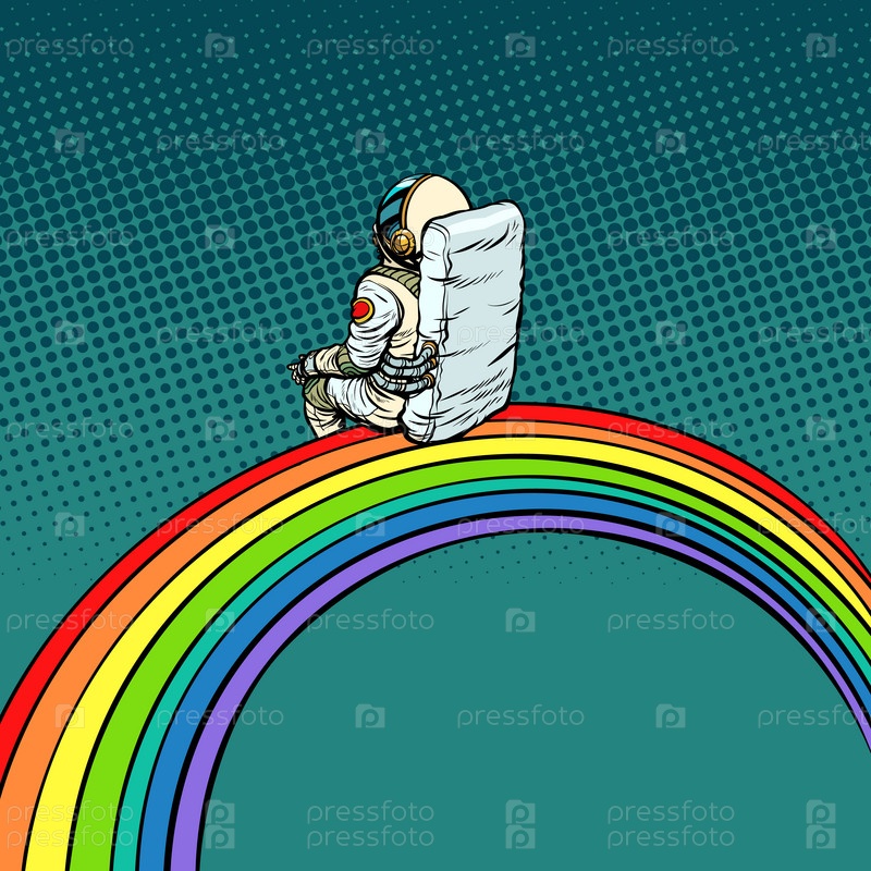 Космонавт сидит на радуге