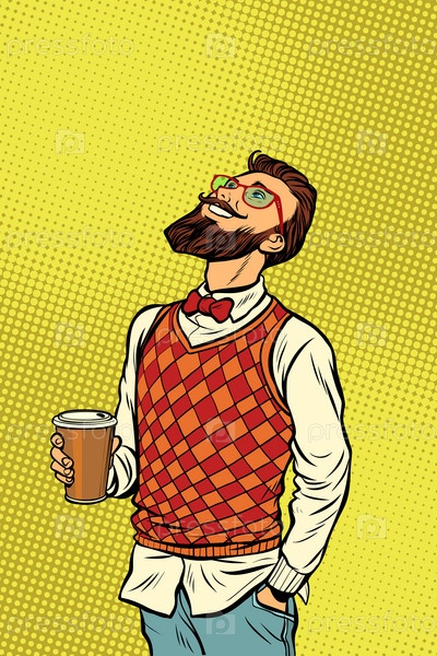 Хипстер пьет кофе и смотрит вверх