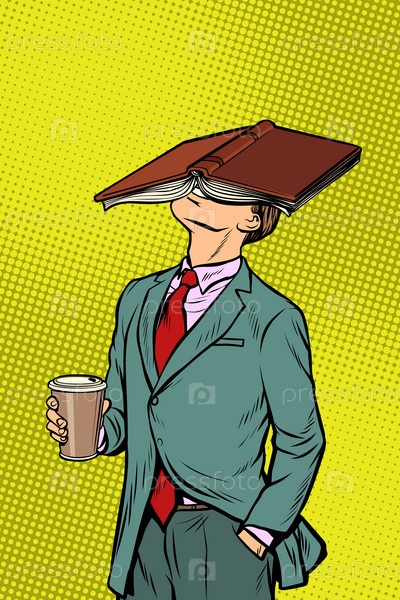 Бизнесмен с кофе и читает книгу