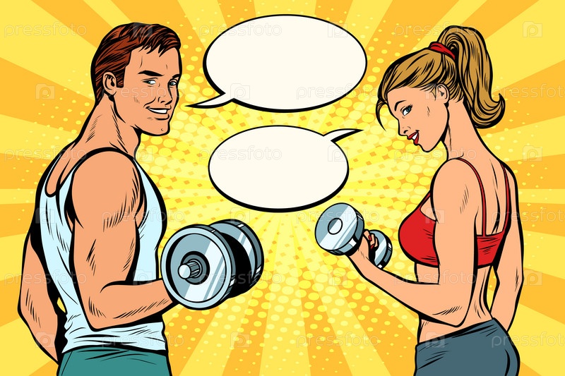 Мужчина и женщина с гантелями